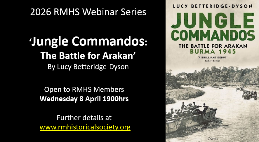 Join the RMHS and military historian, Lucy Bettridge-Dyson in our first webinar of 2026. The talk, ‘Jungle Commandos: The Battle for Arakan’ in Burma 1945. Lucy’s talk will focus on the role and activities of 3 Commando Brigade at the Battles of Myebon and Kangaw.